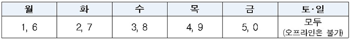 - 요일제 운영: 신청 초기에 출생연도 끝자리 기준 요일제 적용